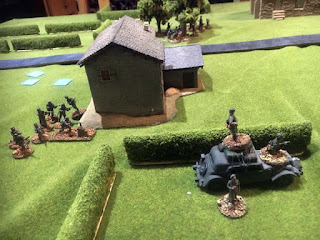 | Zoe (with bag of explosives) took four orders to move and shoot the guard from the objective. I was down to 1 order to take the objective on the last turn and needed a role of 14 or less or I would lose. Woot success but this was the closest game we have had in at least 3 months. |
